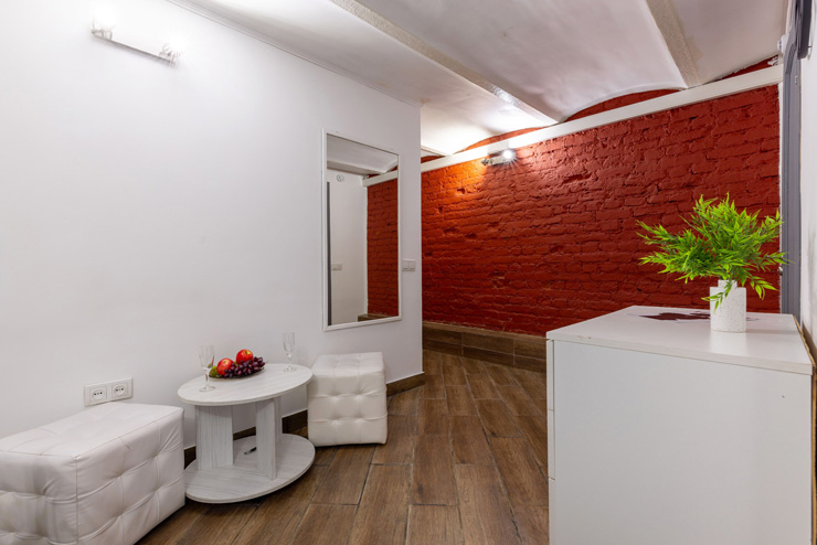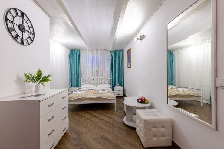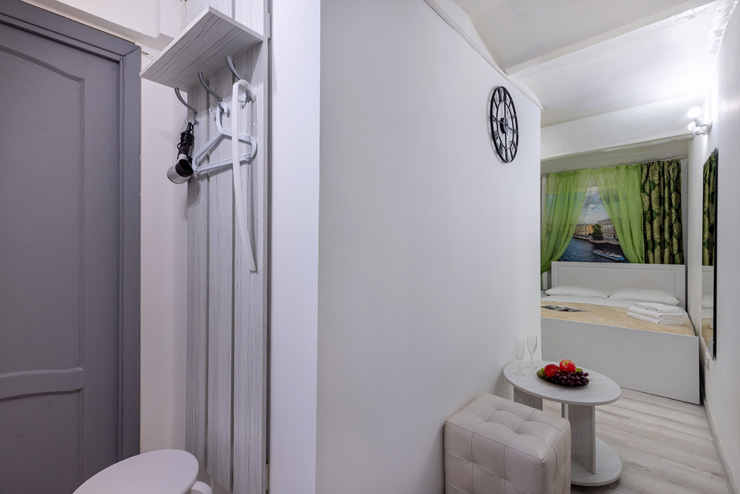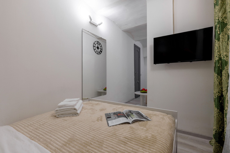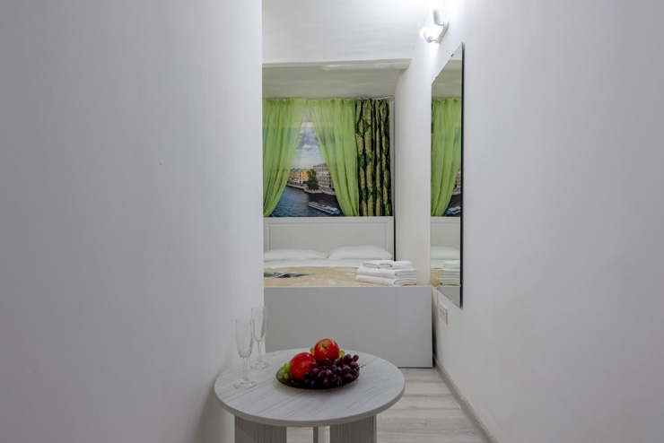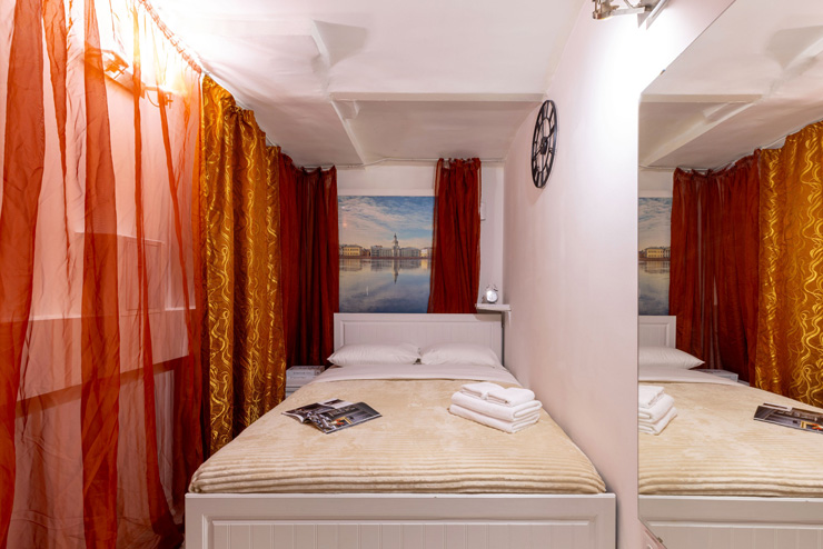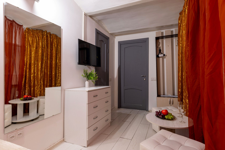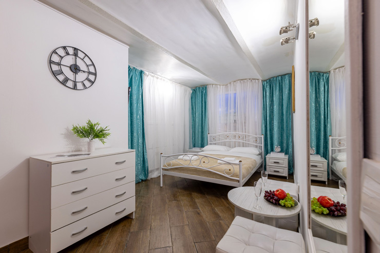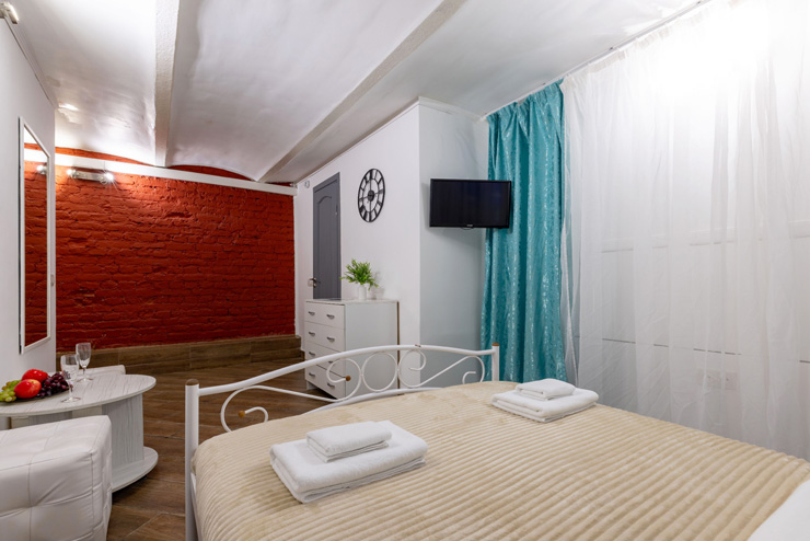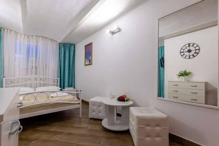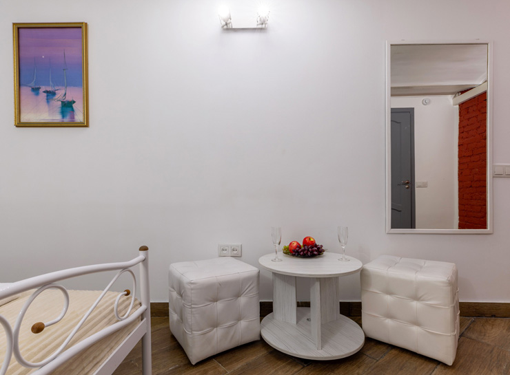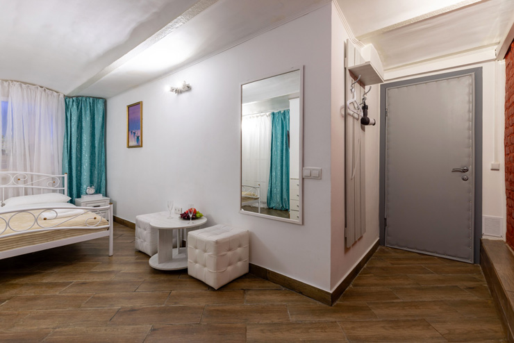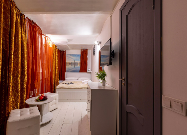 | Апартаменты 2-местные дизайнерские | 16 кв.м. | 2 чел. | Мебель (вешалка, зеркало, комод, кровать двуспальная, стол, стулья), Оборудование (телевизор), Сануз... | |