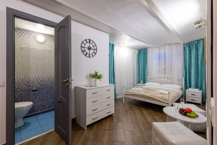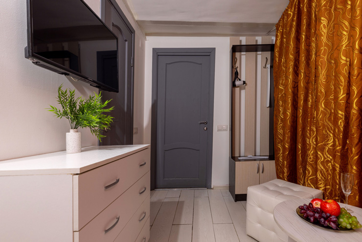 | Апартаменты 2-местные улучшенные (фиолетовый или мятный) | 13 кв.м. | 2 чел. | Мебель (вешалка, зеркало, кровать двуспальная, прикроватные тумбочки, стол, стулья, шкаф), Оборудова... |